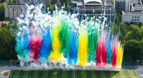 鼓声欢跃,彩旗招展。国旗护卫队迈着坚定的步伐,护送国旗庄严入场。在激昂的乐曲声中,鼓乐队、花束队、彩旗队及师生方队迈着矫健的步伐,喊着嘹亮的口号,以创意十足的队形变换和特色展示,赢得现场观众的阵阵掌声。随着国歌的奏响,全体师生肃立,目光坚定,凝视着五星红旗冉冉升起。