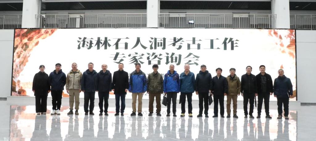 会前,相关人员赴海林石人洞遗址发掘现场,观摩出土文物,并参观“石窟崖居,史前大场”海林石人洞遗址考古成果展。