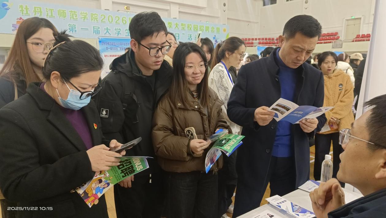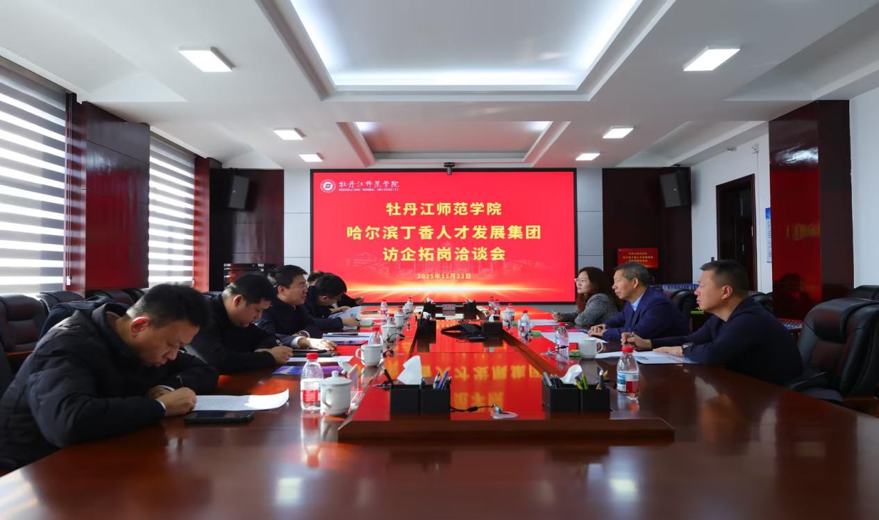 在招聘会过程中,哈尔滨丁香人才发展集团与牡丹江师范学院举办访企拓岗洽谈会,双方围绕人才培养、供需对接等方面深入沟通交流,达成合作共识。