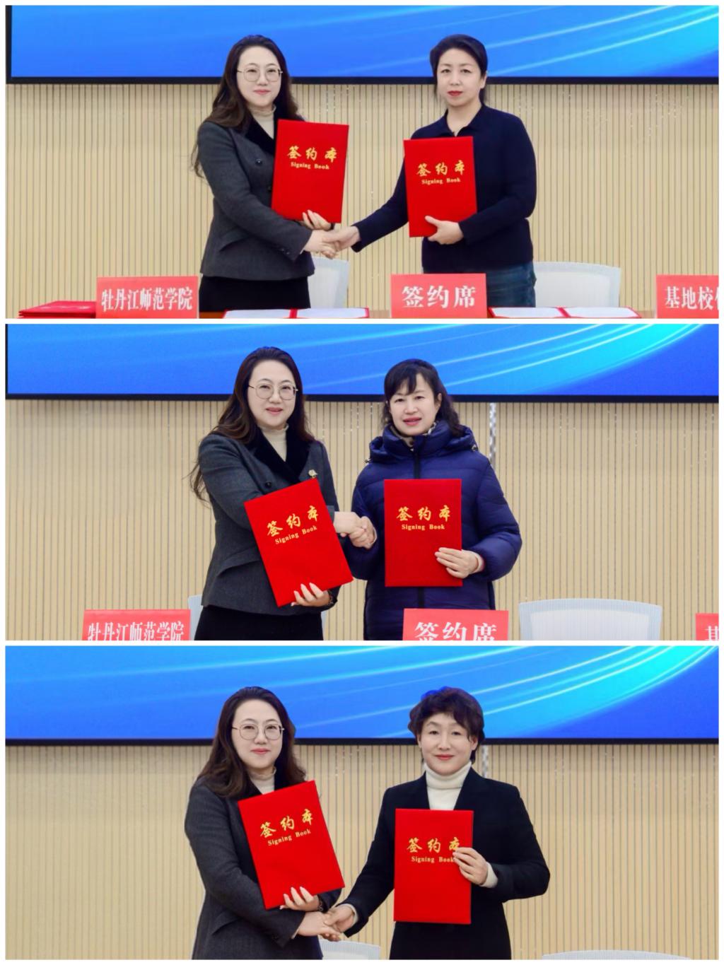 会上,16所新增基地校代表与学校完成签约。签约仪式后,基地校代表依次上台发言。立新实验小学、牡丹江第四中学等老基地校分享了宝贵的实践经验,宁安市实验小学、牡丹江市教育第三幼儿园、绥芬河市第一中学等新增基地校代表则畅谈发展愿景与决心。截至目前,我校在牡丹江市共建“国培计划”实践基地28个。
