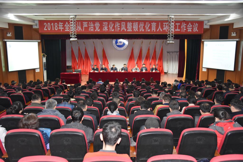 4月10日下午,学校在春秋讲坛召开2018年全面从严治党深化作风整顿优化育人环境工作会议。学校党政领导、全校副科级以上干部、全体辅导员参加会议。会议由校党委副书记、校长梁中贤主持。