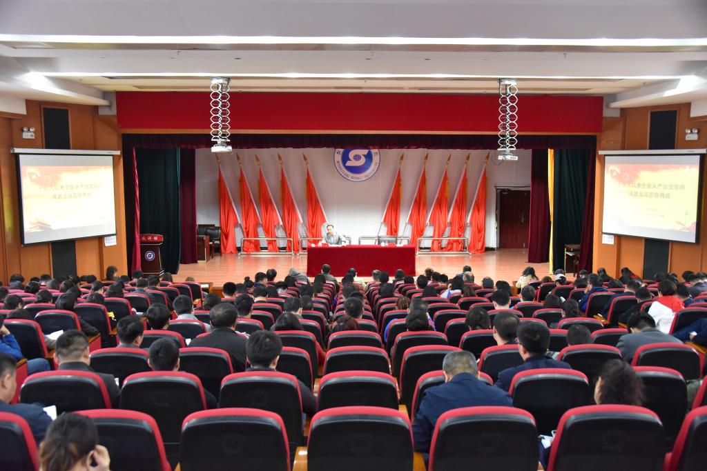 4月23日,校党委党校在春秋讲坛举办第三期十九大精神培训班第二次专题辅导。全校处、科级干部;党支部书记;系部主任参加专题辅导。校党委常委、组织部长张冬主持专题辅导。