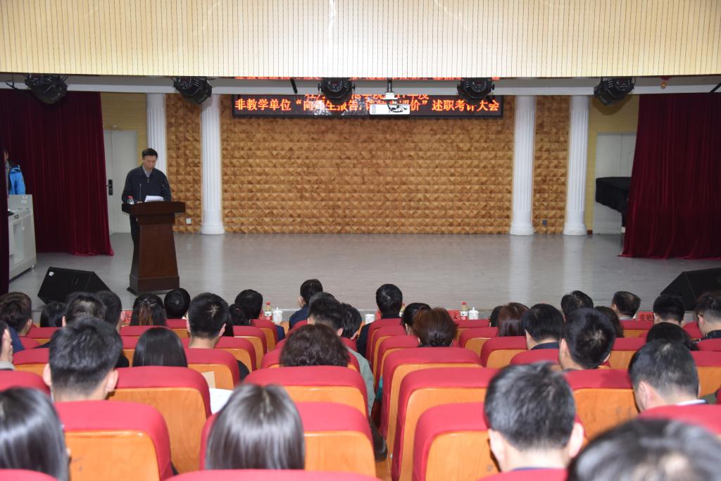 会上,与二级学院教学、科研服务保障联系紧密的非教学单位负责人,按照《牡丹江师范学院处级单位工作业绩考核办法》(试行)要求,根据标年度工作任务、服务师生、作风转变情况,向服务对象述职报告工作完成与进展情况。各单位负责人通过“述工作、报数据、晒业绩、谈转变”,对2017年重点工作完成情况、创新工作举措等方面进行述职报告,并诚恳接受服务对象的评价和监督。通过“现场听、网上看、大家评”,服务对象考核专家们将综合办公网上统一公示的各单位业绩情况、日常工作中该单位的服务意识、服务态度、服务质量、作风转变等情况综合进行考评打分,打分结果将作为职能部门工作业绩考核的重要组成部分。