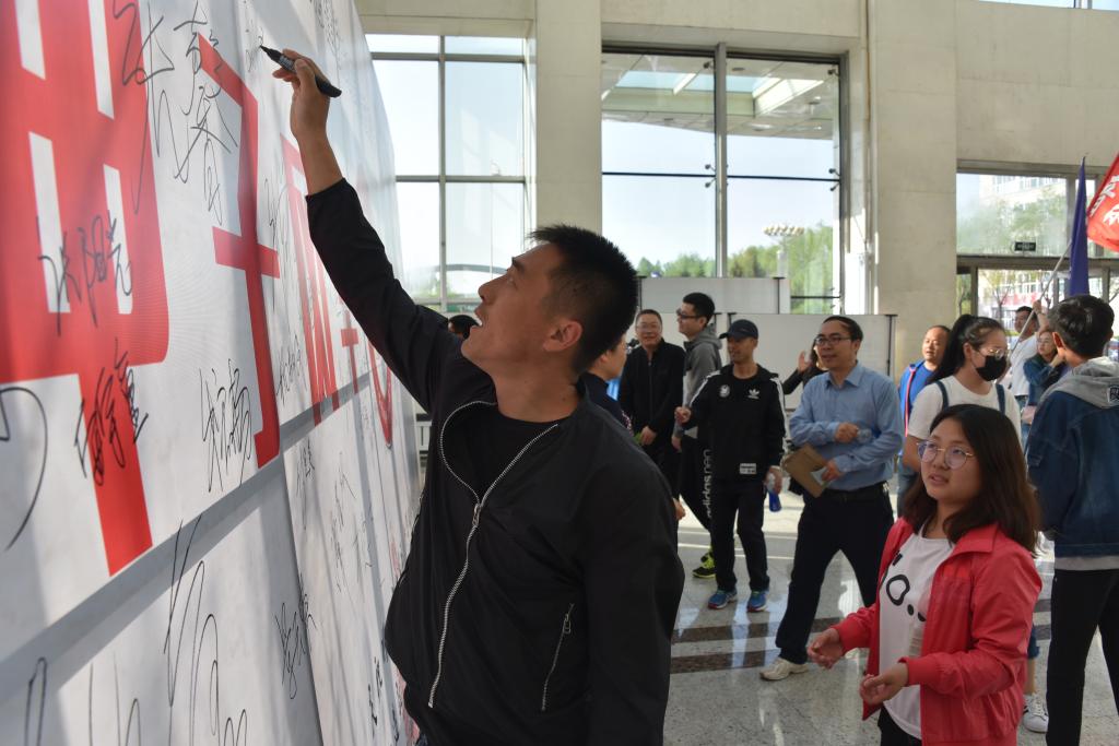 本次环校园健走活动,得到了全校23个基层工会的积极响应,参加活动的近二百名教职工人人精神抖擞,迈着矫健的步伐从学校田径场出发,神采飞扬地经过学校东门、北门、南门等六个报到点,在每个报到点教职工都饶有兴致地领取了意气风发、爱校如家、飒爽英姿、戮力同心等报到标识,有的教职工将五彩缤纷的报到标识庄重地贴在自己的胸前。在经过学校综合楼时,教职工纷纷在阳光大厅喜迎建校六十周年倒计时一百天签名墙上签名留念。同时,活动中穿插安排了教职工“校史校情”有奖答题环节。学校一个甲子的发展征程和美好愿景,已被大家深藏在心灵深处,转化为广大教职工“做好主人翁建功新时代”的内生动力。
