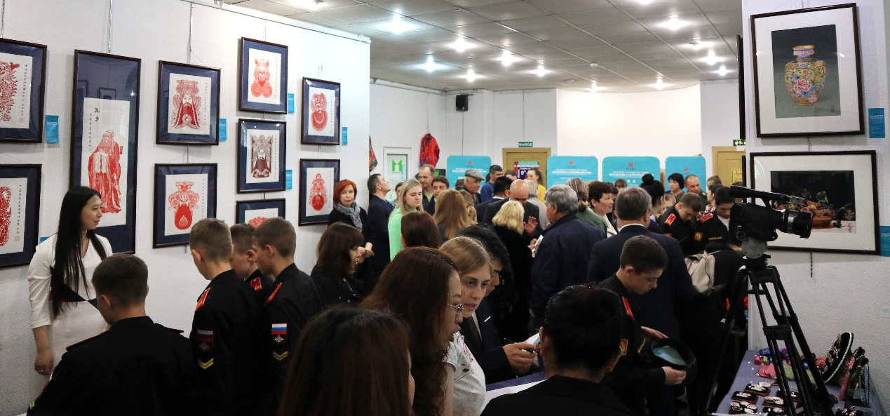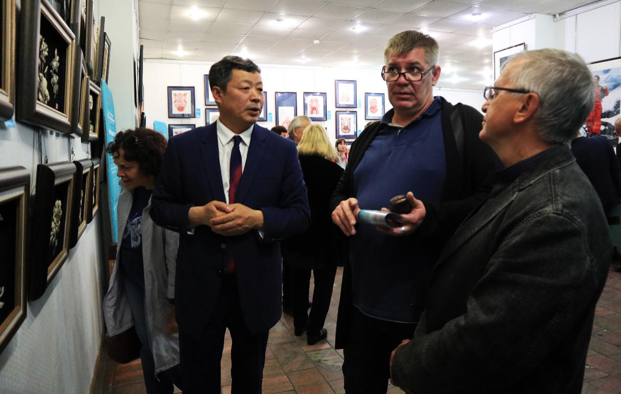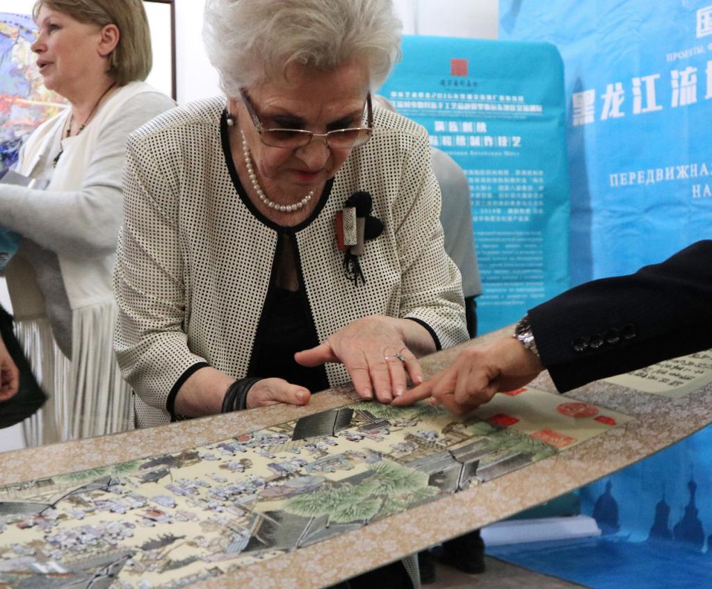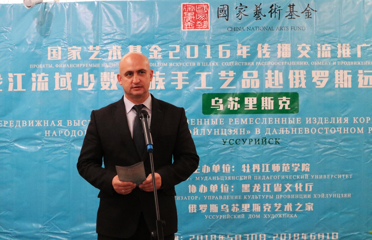 乌苏里斯克市杜马维克多副主席在致辞中热烈欢迎并感谢中国艺术家给乌苏里斯克市市民带来的艺术盛宴。“艺术之家”展馆馆长、俄罗斯功勋艺术工作者奥列加参观了展览,对展会艺术家作品的内涵和创作技艺均给予了很高的评价。她说,展馆多次举办来自中国上海、香港等地的艺术展,但是有关中国少数民族手工技艺艺术家的展览还是第一次,这给当地的艺术家和学者提供了一次难得的与中国艺术家面对面的交流机会。
