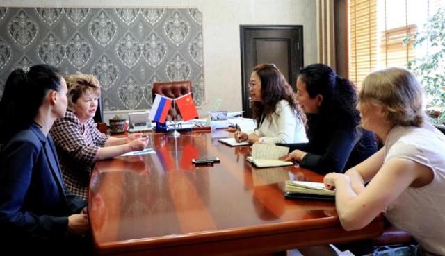 项目组与符拉迪沃斯托克国立经济与服务大学分校校长格里戈利耶夫娜洽谈合作研究事宜