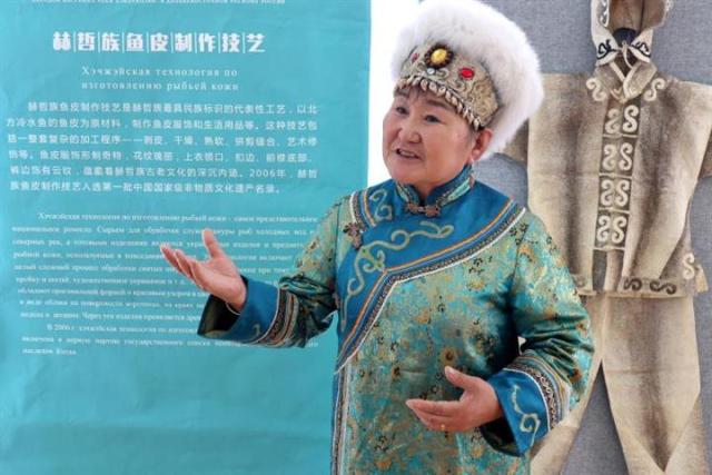 赫哲族鱼皮服饰与伊玛堪传承人、67岁的艺术家尤文凤为自己有生之年有幸到俄罗斯寻根溯源赫哲族(俄罗斯那乃族)文化而高兴,她希望借助中俄睦邻友好的历史机遇,与世居黑龙江畔的同族兄弟姐妹们勠力同心,将赫哲族优秀民族文化发扬光大。
