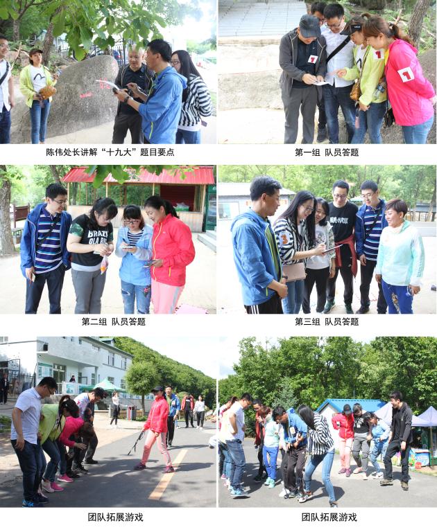 本次比赛共分为四个环节,即团队拓展游戏、徒步登山、“十九大”精神答题和自由活动环节。同志们积极踊跃地参加比赛,在团队拓展游戏“螃蟹搬家”中同力协契、团结奋进;在徒步登山中不言放弃、你追我赶;在“十九大”精神答题中凝神聚力、开动脑筋;在自由活动时触摸自然、聆听苍穹;整个比赛既有紧张刺激的角逐,又有轻松恬适的自在,在身心得到锻炼与放松的同时,展现了我校教职工积极向上、勇于拼搏、团结和谐的精神风貌。