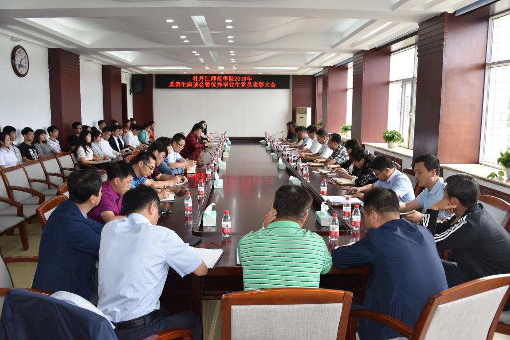 会上,组织部副部长孙蕾总结了学校2018年选调生工作;党委副书记杨春文宣读《中共牡丹江师范学院委员会关于表彰奖励2018届毕业生中考取黑龙江省委选调生的党员的决定》;校领导为优秀毕业生党员代表颁发证书和奖金;职能部门领导为选调生代表颁发奖金。会上,选调生代表座谈发言,他们纷纷表达了对母校多年培养的感恩之情,表示将珍惜机会,传承学校“大荒地”精神,不负学校与组织的重托,怀揣理想,砥砺前行。