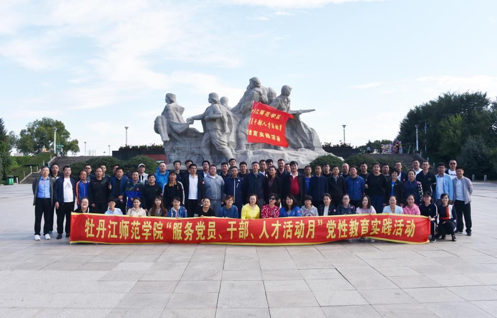 校党委书记王育伟为第四届“服务党员、干部、人才活动月”党性教育实践活动进行授旗,参会人员于9月21日下午,乘车赴八女投江纪念馆、江心岛开展了系列党性教育实践活动。在八女投江纪念馆工作人员的解说下,党员干部了解了八女英烈的伟大事迹及牡丹江抗战十四年的艰苦历程。在接受革命传统教育的基础上,全体人员重温入党誓词,进行了一次思想和精神上的洗礼;随后,开展了“环江心岛徒步比赛”,参赛成员共分为17组,经过激烈角逐,最后分别由第17组、12组和第5组成员获得前三名。整场比赛,在学校领导的带领下,党员干部间同场竞技、增进交流、加强联系,比赛气氛热烈祥和,组织生活效果突出,党性教育效果良好。