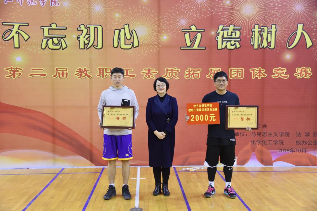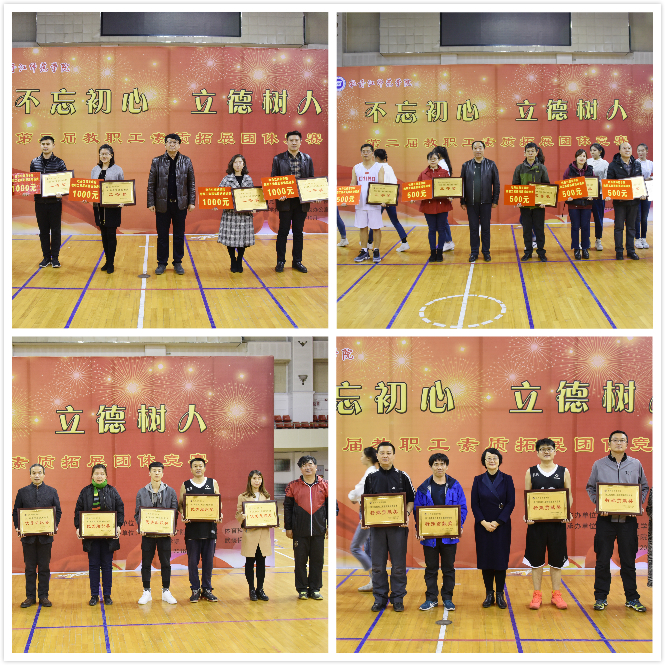 10月31日下午,学校“不忘初心 立德树人”第二届教职工素质拓展团体竞赛闭幕式在体育馆举行。全校23个基层工会负责人与参赛教职工代表参加闭幕式。校领导梁中贤、李旭中、刘峰、张艳霞、秦植林出席闭幕式。校党委常委、工会主席张艳霞主持闭幕式。