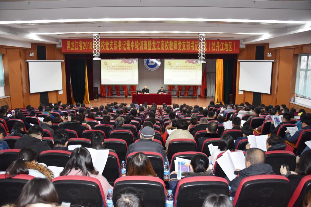 2018年11月21日上午,由省委教育工委主办、牡丹江师范学院党委承办的“黑龙江省2018年高校党支部书记集中轮训班暨龙江高校教师支部书记沙龙”开班式在牡丹江师范学院春秋讲坛举行。来自牡丹江师范学院、牡丹江医学院、牡丹江大学、黑龙江幼儿师范高等专科学校、黑龙江商业职业学院、黑龙江林业职业技术学院、黑龙江农业经济职业学院的230余名基层党支部书记参加培训。黑龙江工业学院的7名教师党支部书记主动参训。牡丹江师范学院党委副书记杨春文,牡丹江医学院、牡丹江大学党委组织部门负责人,牡丹江师范学院23个基层党委(党总支)书记、副书记出席开班式。开班式由牡丹江师范学院党委常委、组织部部长张冬主持。