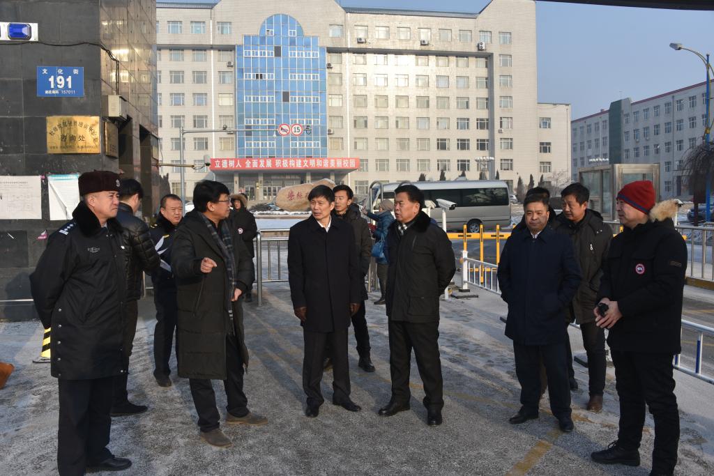 2018年12月13日上午,牡丹江市委督查组组长、牡丹江市委副秘书长金铭鼎带领市教育局、建设局、公安局、运管处、交警支队、食药局,爱民区城管局、爱民区市监局、温春镇政府、温春镇市场监督所及市委督查室相关人员到我校开展督查工作。校党委书记王育伟、副校长李旭中、党委常委、组织部部长张冬,办公室、后勤管理与服务处、学生工作部、武装保卫处、图书馆等部门负责人陪同督查。