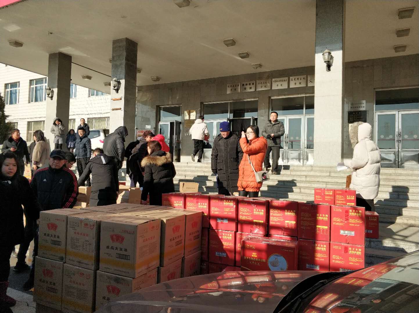 1月6日上午,3辆满载慰问品的货车抵达学校各个办公楼,校工会组织全校23个基层工会为1200余名在职教职工会员送上春节慰问品,向为深化学校内涵发展和推进综合改革做出贡献的在职教职工表示感谢,让在职教职工感受到学校党委和行政的重视、关心和工会组织的温暖,为大家送上春节的慰问和祝福。