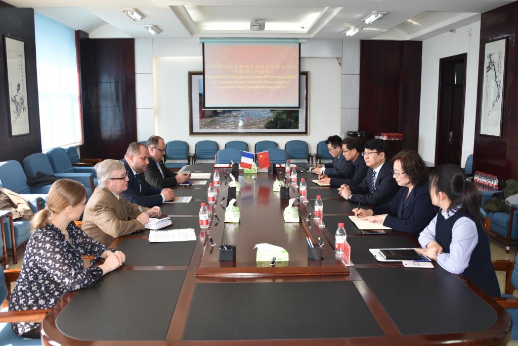会谈中,李旭中副校长对远东联邦大学乌苏里斯克分校代表团的来访表示欢迎,并向代表团介绍了我校对俄交流情况,希望两校可以开展更多领域、更深层次的合作,通过学生短期实习、教师互派培训、科研人员互访等形式,全面提高我校在学科专业建设、教师技能提高、科研项目开发等方面的综合水平。同时,会议就学历及师范教育领域合作,艺术专业学生海外实习、汉语教师短期培训、实时网络课堂教学等问题进行了交流并达成了共识。