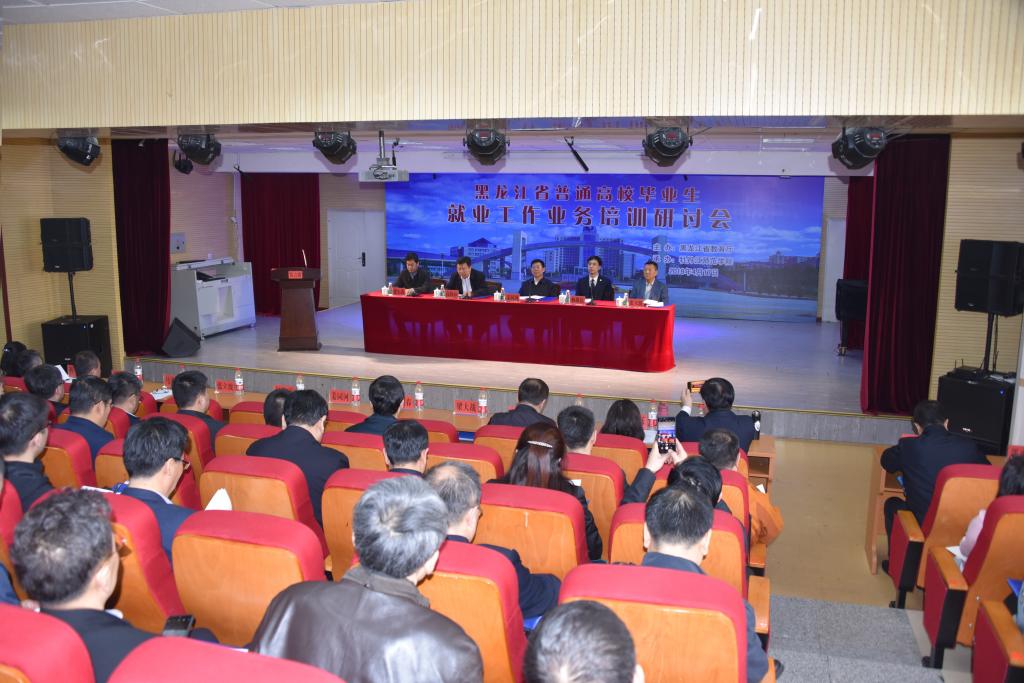 黑龙江省教育厅副厅长姜同河在会上讲话。他总结了我省2018年毕业生就业工作总体情况,分析了当前我省高校毕业生就业工作形势,剖析了当前高校毕业生就业工作中存在的问题。他指出,2019年是实施就业优先战略、全面贯彻落实全国教育大会和全省教育大会决策部署的重要一年,各高校要切实增强责任感和紧迫感,突出重点领域和关键环节,抓住重点精准发力,全力推进高校毕业生就业工作,确保就业局势基本稳定,就业质量和水平进一步提高。一要提高政治站位,增强政治担当,把确保2019年毕业生就业总体稳定,实现更高质量和更充分就业作为首要任务,摆到重要位置上来抓;二要注重思想引领,鼓励更多的毕业生到我省基层就业创业,加强宣传教育,围绕我省经济社会发展需要,主动对接发展战略需求,向重点地区、重大项目、重要领域输送毕业生;三要再宣传再教育,把政策宣传作为促进毕业生就业的基础性工作,确保每一名毕业生都知晓和用好政策;四要加强就业监测和预警,健全就业与招生、人才培养的联动机制;五要聚焦重点人群,着力做好特殊群体就业帮扶和就业稳定工作;六要强化保障,完善就业工作体制机制,实施好“一把手”工程,落实“机构、人员、场地、经费”四到位。