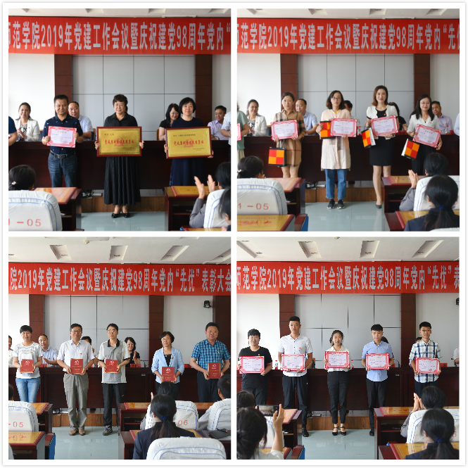 本次会议按照“应减必减、应并必并、应开必开”的原则召开,会议内容丰富、统筹设计。会上,校党委常委、宣传统战部部长秦植林同志宣读《“解放思想强使命、全体党员讲党课”暨“微型党课”课案评比获奖名单》及《关于表彰奖励2019年考取黑龙江省委选调生的毕业生的决定》;校党委常委、工会主席张艳霞同志宣读《2019年度党内“先优”表彰奖励决定》及《关于慰问奖励连任十年及以上的现任党支部书记的决定》;学校领导为先优集体和个人颁奖;“先优”代表计算机与信息技术学院党委书记葛翠茹,教育科学学院党委教师第一党支部书记王华,物理与电子工程学院学生党员于贺分别代表先进党组织、先进个人和选调生发言。他们与参会党员分享交流了各自工作和学习岗位的收获感悟和体验,表达了对党组织的感谢和美好祝愿;校党委常委、副校长张冬总结了2019年上半年党建工作,并对下半年党建工作进行安排部署;校党委常委、纪委书记刘峰做“不忘初心、牢记使命”主题教育暑期学习安排。