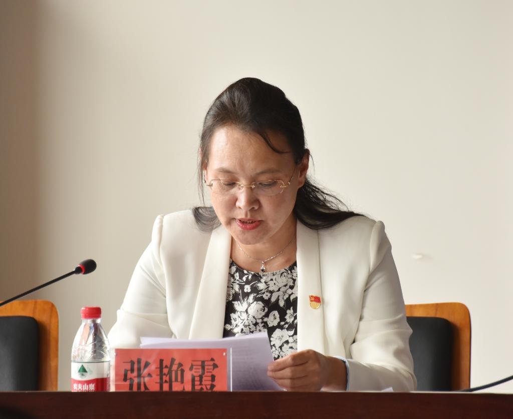 校党委常委、工会主席张艳霞同志宣读表彰党内“先优”及慰问奖励连任十年及以上的现任党支部书记的决定