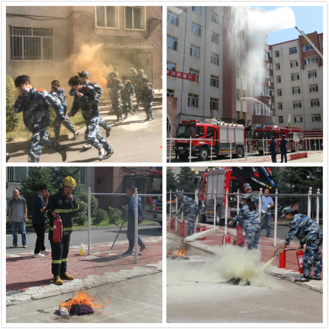 演练前,学校制定了详细演练方案,明确人员分工,并预先对学生开展了安全教育,让学生掌握逃生基本常识、疏散路线和要求。上午10:30分,六号公寓楼浓烟四起、气味呛鼻,并迅速向楼上、院内蔓延,随着警报声响起,公寓工作人员迅速启动消防应急疏散预案,参演学生在引导人员的引导下快速有序地按照规定路线低姿撤离。消防官兵很快赶到火场,演示利用消防车灭火及利用云梯营救火场被困人员。演习结束后,消防官兵为师生讲解了火灾逃生注意事项及灭火器的使用方法,师生代表进行了实际操作演练。武保处处长施洪涛对本次消防安全演练活动进行总结,并提出要加强消防安全意识、增强火灾自救能力等具体要求。