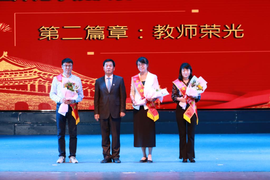 此次表彰大会由“初心守望”“教师荣光”“使命传承”三个篇章组成,内容丰富、形式多样、精彩纷呈,采用教师表彰与文艺演出交叉错落进行的方式,张弛有度,高潮迭起。一首激昂豪迈的赞歌《我和我的祖国》,拉开了表彰大会的序幕,优美的旋律,动听的歌喉,表达了师生们对伟大祖国的敬意和祝福,传递着对老师们辛勤付出的深深感激;音乐与舞蹈学院的杨光宇深情献唱,一首《老师,我想你》深情地诉说和表达了对老师的无比崇敬与无限感恩之情;由张应力教授倾情编导,朗读者协会师生真情演绎的诗朗诵《教师之爱》将本次表彰大会推向高潮,字字铿锵,句句含情,时而豪迈奔放,时而慷慨激昂,时而细腻深情,他们用自己的理解和演绎表达着对教师这一神圣职业的赞美,向为人师者致以崇高的敬意和诚挚的祝福,体现了全校教工不忘初心、牢记使命的思想共识和使命担当。