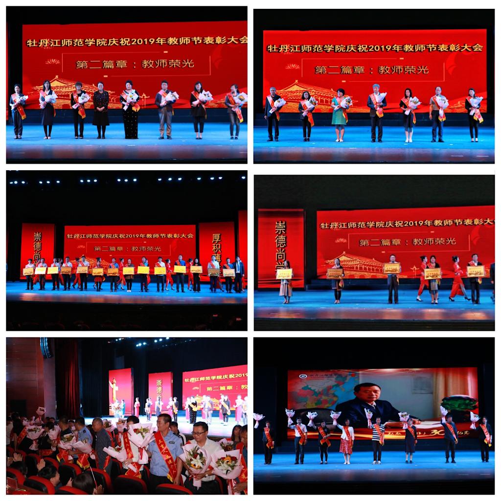 会上,校党委常委、纪委书记刘峰宣读《中共牡丹江师范学院委员会关于2018-2019学年三育人先进集体、先进个人标兵和先进个人的决定》;校党委常委、副校长杨敬民宣读学校《关于表彰第八届青年教师教学竞赛优秀集体和个人的决定》《关于表彰第六届黑龙江省高校微课教学比赛和第六届黑龙江省高校青年教师多媒体课件制作大赛获奖教师的决定》《关于表彰全省模范教师、全省优秀教师表彰决定》。学校党政领导为获奖的优秀集体及个人颁奖。