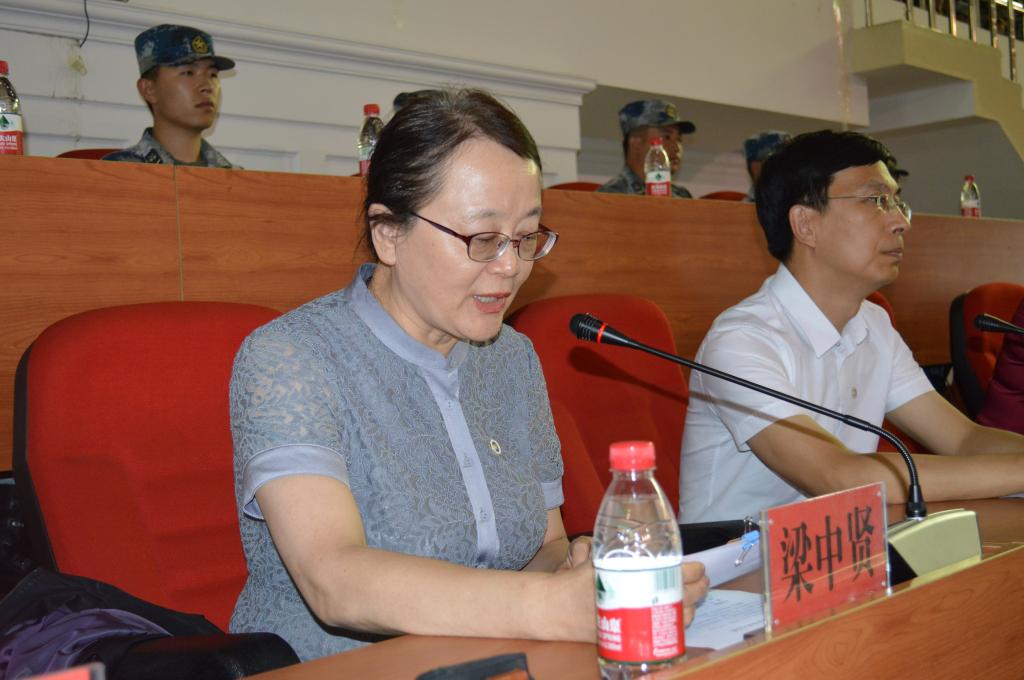 校长梁中贤在开学典礼上致辞。她代表学校党政领导班子和全体师生向来自全国各地的3774名新同学表示热烈的欢迎,向圆满完成军训的全体新同学致以热烈的祝贺,向承担训练任务的全体官兵表示崇高的敬意和由衷的感谢。梁校长表示,军训是进入大学的第一堂课,在短短两周的军训历练中,同学们的表现非常优异,相信在军训中养成的行为习惯、磨练的意志品格、锤炼的过硬作风都将是你们大学四年学习生活,和今后人生道路上宝贵的一笔财富。梁校长引用国学经典“四书”之一的《大学》的内容,希望同学们能在今后四年的学习生活中,求知、探索,领悟人生的真谛。