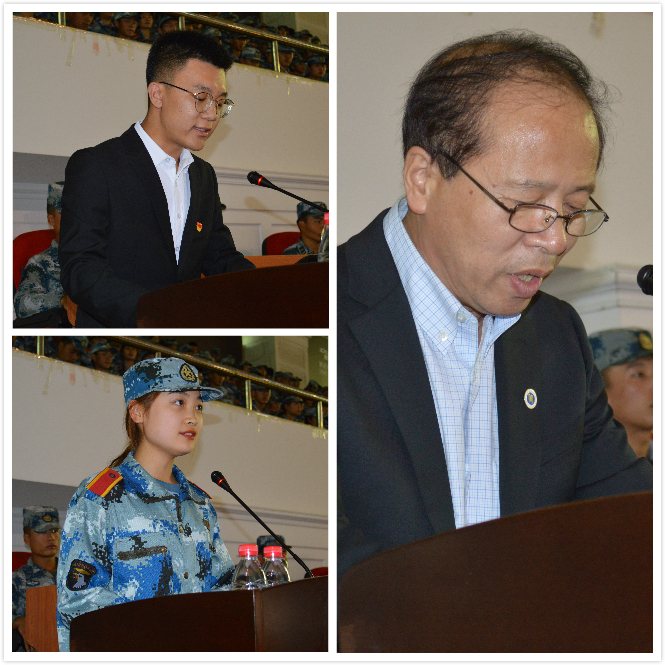 教师代表体育科学学院院长栾振昌教授,在校生代表2016级计算机与信息技术学院学生、第54届校学生会主席杨东业,新生代表2019级文学院学生李墨函分别发言。