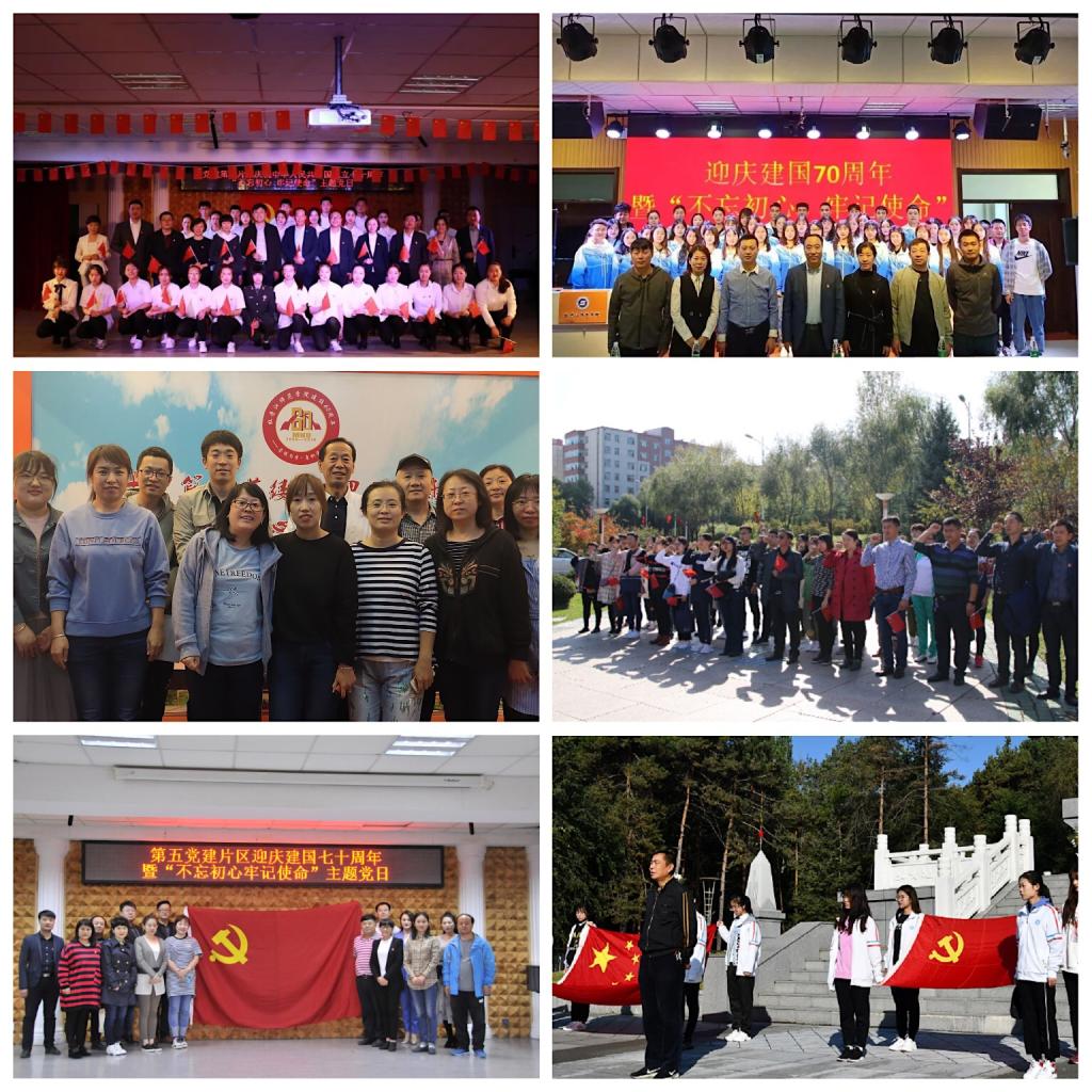 为庆祝新中国成立70周年,弘扬爱国主义精神,激励师生党员不忘初心、牢记使命,按照学校《关于开展庆祝新中国成立70周年暨“不忘初心、牢记使命”主题党日活动》的通知安排,8月26日至9月27日,学校22个基层党委(党总支)、110个党支部,积极开展了庆祝新中国成立70周年暨“不忘初心、牢记使命”主题党日活动。各基层党组织通过讲党课、讲初心故事、主题沙龙、志愿服务、向先进典型学习、艺术创作等多种形式开展主题党日,组织300余名师生党员赴海林七里地第一党支部、中东铁路博物馆、八女投江纪念馆等革命教育基地开展现场教学。并在此基础上,以6个党建工作片区为单位,组织优秀主题党日观摩活动。按照学校党委“不忘初心、牢记使命”主题教育工作统一安排,学校党政领导、校内指导组成员、学校主题教育领导小组办公室部分成员分别参加六个党建片区优秀主题党日观摩。