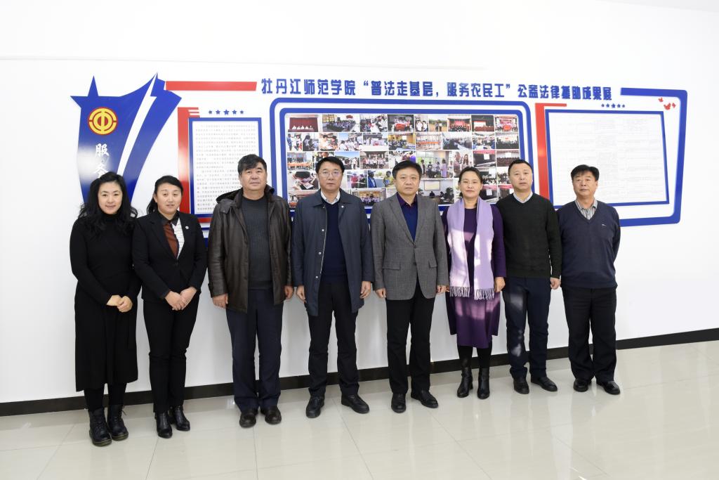 王志浩书记一行同步参观了学校法律顾问工作室和牡丹江市总工会、牡丹江市法律援助中心职工法律援助工作站,对法学院开展的“普法走基层、服务农民工”法律援助活动给予充分肯定,并与值班律师进行工作交流。