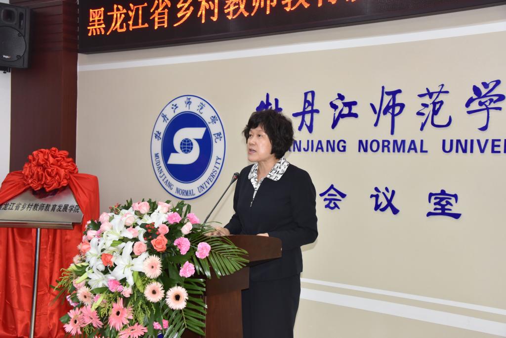 黑龙江省教育厅副厅长姜同河在会上讲话。姜同河副厅长表示,省乡村教师教育发展学院的成立,是牡丹江师范学院发展史上具有里程碑意义的一件大事,希望省乡村教师教育发展学院坚持师范教育特色,落实“卓越教师培养计划”,注重乡村教师培养,建立覆盖全省的乡村教师发展体系,建立高校、科研院所、各级教师专业发展机构和中小学共同参与、协同推进的中小学教师队伍建设工作机制,在教师培养培训模式、资源共享共建、协作帮扶机制、教育教学研究等方面开展协同创新合作。创新乡村教师教育发展模式,积极推进师范教育工作改革,为社会培养造就一批高素质、专业化、创新型的基础教育教师队伍。