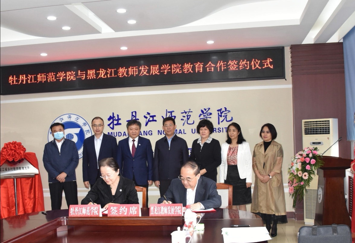 会上,在省、市、校领导的共同见证下,黑龙江教师发展学院院长庄严与我校党委副书记、院长梁中贤共同签署了《牡丹江师范学院与黑龙江教师发展学院教育合作框架协议》。