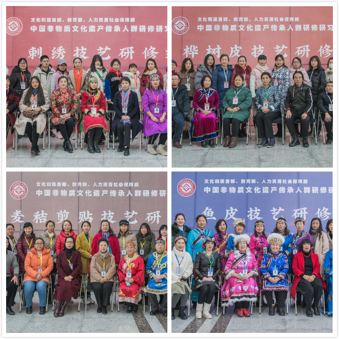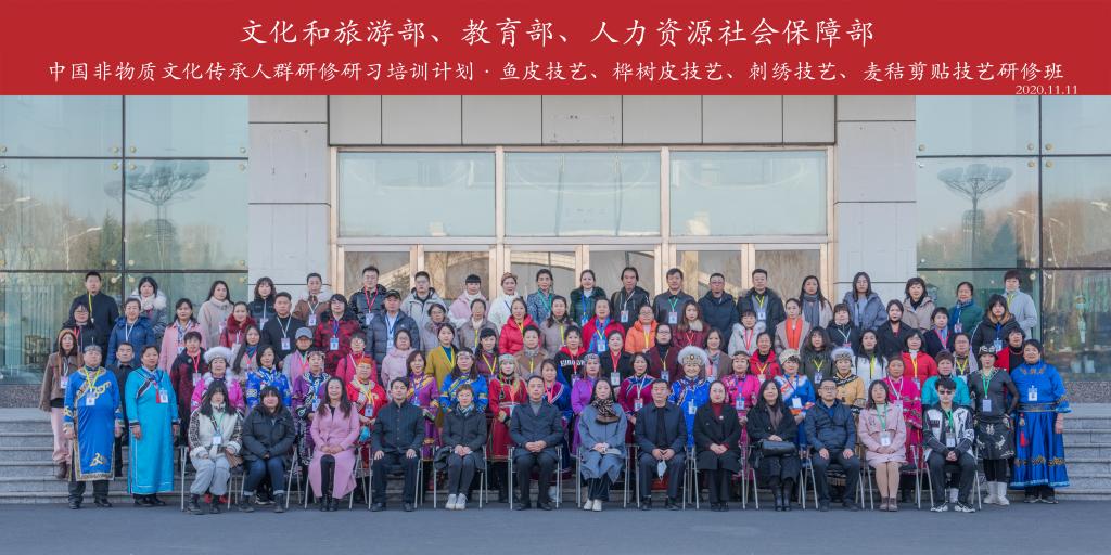 11月11日,中国非物质文化遗产传承人群研修研习培训计划鱼皮技艺、桦树皮技艺、刺绣技艺、麦秸剪贴技艺研修班开班仪式在我校举行。此次开班式采用主会场与分会场线上和线下相结合的方式。本期培训由黑龙江省文化和旅游厅主办、我校承办,80名手工技艺传承人群将在为期30天的培训中,强基础、拓眼界、增学养,提高传承实践能力,促进非遗的可持续发展。黑龙江省文旅厅非遗处处长赵佩先、非遗保护中心主任刘梦杰、非遗处二级调研员王春艳、牡丹江师范学院副院长李旭中、科研处处长金志民、省乡村教师教育发展学院(继续教育学院)院长周传胜、副院长王明莉等领导和专家出席了开班式。开班仪式由省乡村教师教育发展学院(继续教育学院)院长周传胜主持。