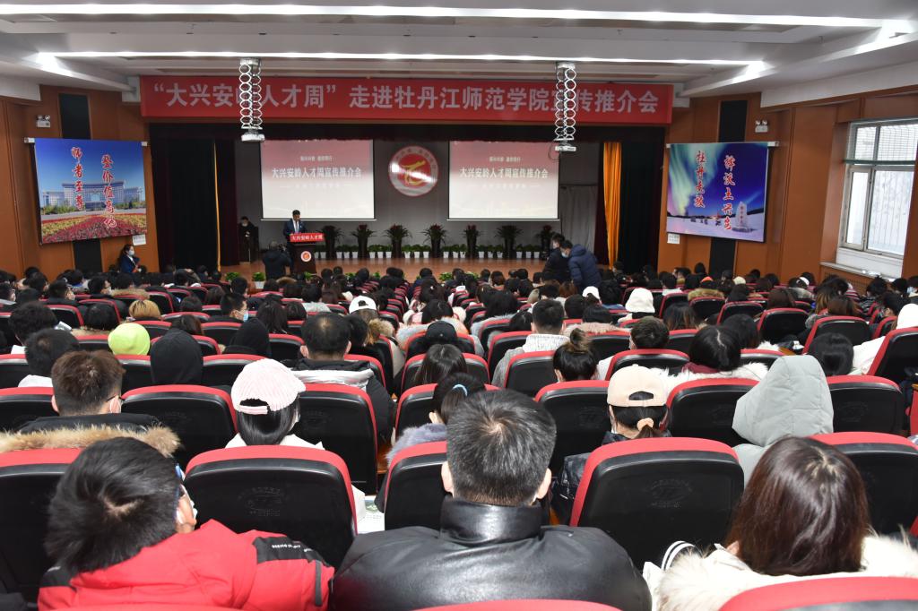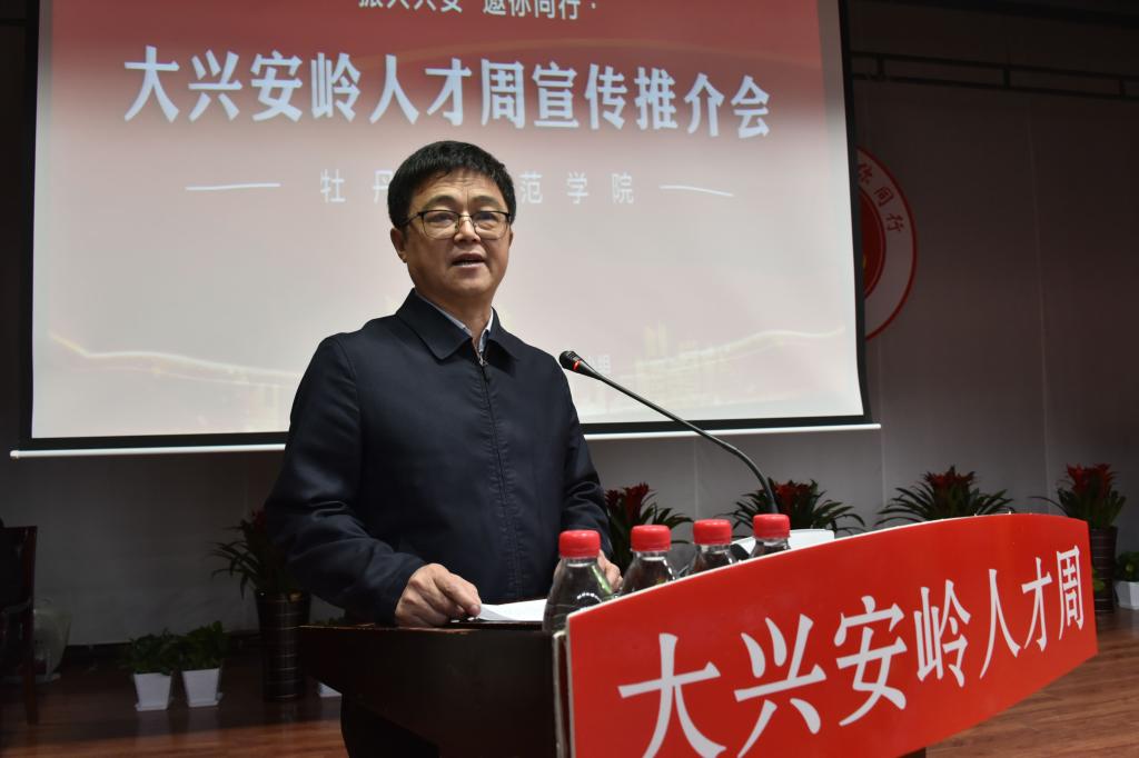 12月3日,“大兴安岭人才周”走进牡丹江师范学院宣传推介会在我校春秋讲坛召开。中共大兴安岭地委书记李大义,地委副书记、秘书长王洪斌,地委委员、组织部部长姜海涛;我校党委书记王志浩,党委常委、副院长张冬出席会议。双方有关部门领导,我校各二级学院党委书记、相关处室负责人,近300名学生代表参会。会议由党委常委、副院长张冬主持。