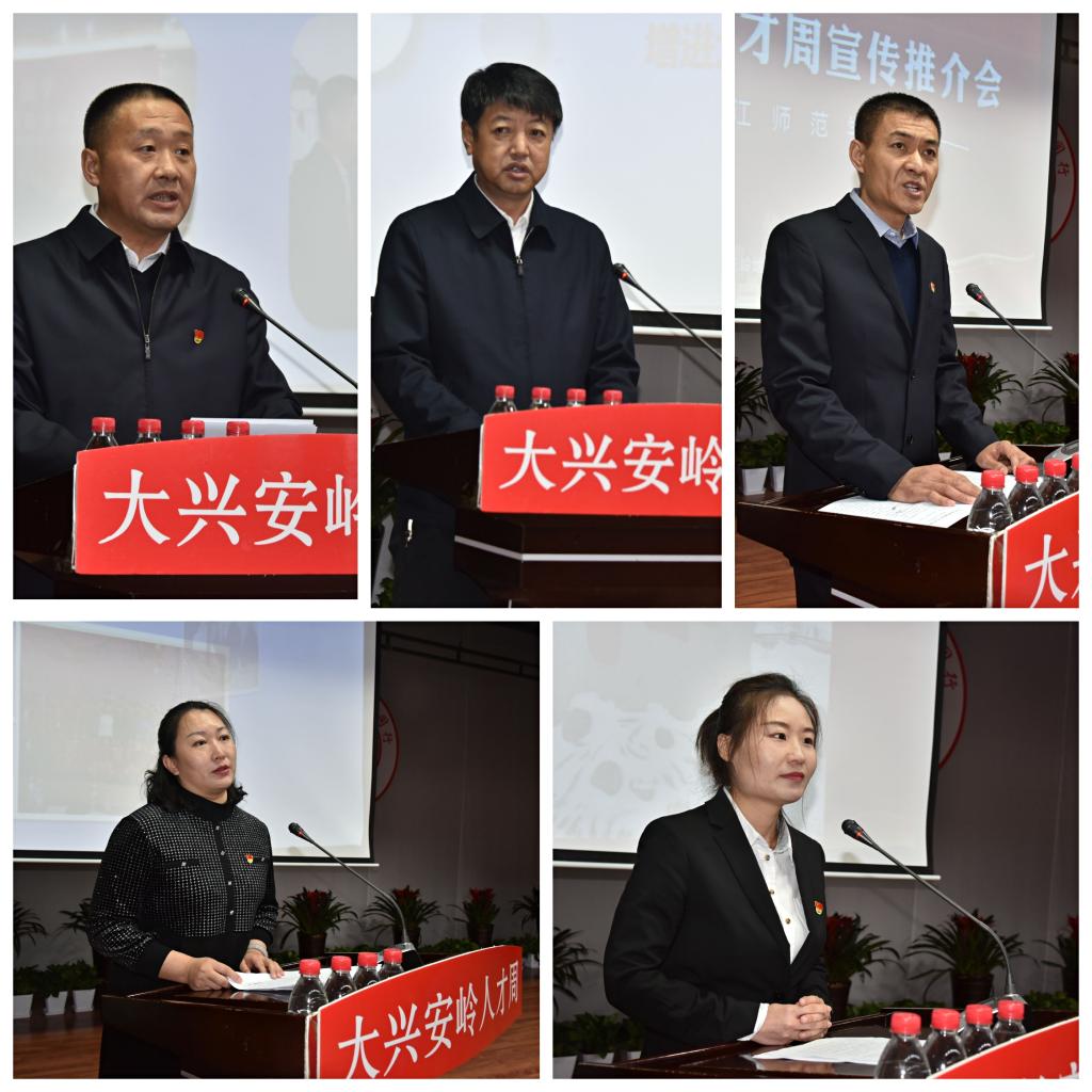 会上,漠河市委书记吴庆军,大兴安岭地区教育局党组书记、局长徐云阁,大兴安岭地区人力资源和社会保障局副局长佟晓光分别围绕人才政策、岗位需求、引进渠道等作了专题宣讲推介。我校优秀毕业生、共青团大兴安岭地委副书记何凤,漠河市北极镇人大主席文竹介绍了自己的成长经历和工作经历,希望学弟学妹选择大兴安岭、扎根大兴安岭。