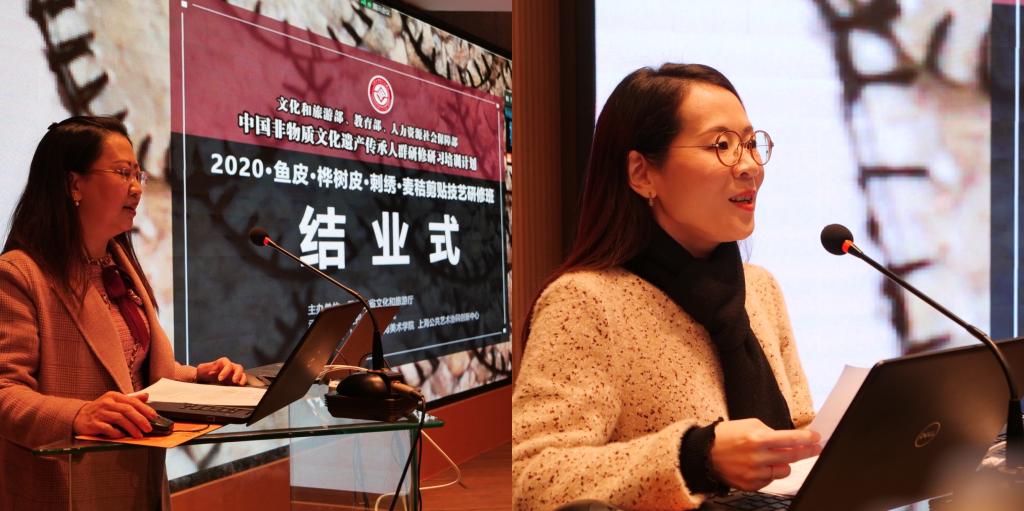 近日,由黑龙江省文化和旅游厅主办、牡丹江师范学院承办、上海大学上海美术学院协办的中国非物质文化遗产传承人群研修研习培训计划“鱼皮技艺、桦树皮技艺、刺绣技艺、麦秸剪贴技艺”研修班在上海大学举办线上线下结业式,80位学员圆满完成了一个月的研修任务。