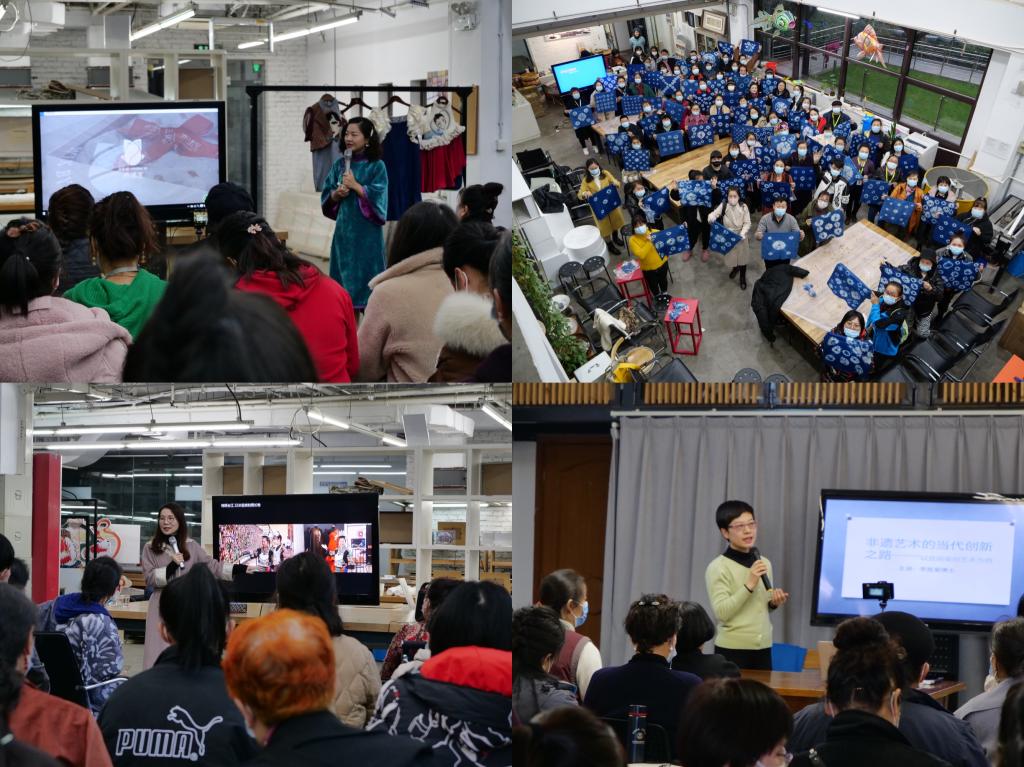 上海研修教学讲座活动以突出时尚设计、品牌营销、创新发展为主旨,特邀了金江波、章莉莉、李胜菊、胡建君、杨庆红、周爱华、苗海燕、叶青、宋连生、施斌、郑姗姗等多位非遗研究专家、“海派”设计师、手工技艺大师,开设了引领非遗发展风尚的学术、实践、体验多元一体的讲座内容,涵盖“城市艺术营造与美育行动”“非遗活态传承与跨界创新”“非遗艺术的当代创新之路”“非遗传统与设计衍生”“非物质文化遗产保护的当代意义”“非遗进课堂:创意为非遗带来传承发展的生命力设计课程教学改革与实践”“非物质文化遗产与高级定制”“上海小囡·时尚非遗”“知行合一:传统手工艺的时尚实践”“工匠怎么走出来——手作、品牌、营销”“扎染工艺手工实践体验课”等基础课程和拓展课程,使研修学员们能够在崇尚自强不息、协同创新、文化相融的上海感受海派艺术之美、非遗文化之美,感受儒雅博学、锐意创新的上海学者、设计师、艺术家的海派魅力与影响,深入研讨黑龙江非遗保护传承与创新发展的有效路径。
