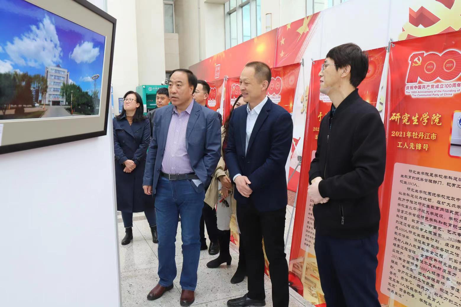 为庆祝建党100周年,深入贯彻落实学校党史学习教育工作部署,培养有高尚道德情操、坚定理想信念、高超专业技能的新时代专业人才,5月10日上午,美术与设计学院在综合楼阳光大厅举办“百年薪火、大美载道”课程思政系列《大美中国》教师摄影作品展。院长、党委副书记李春江,党委副书记刘峰参观了作品展。