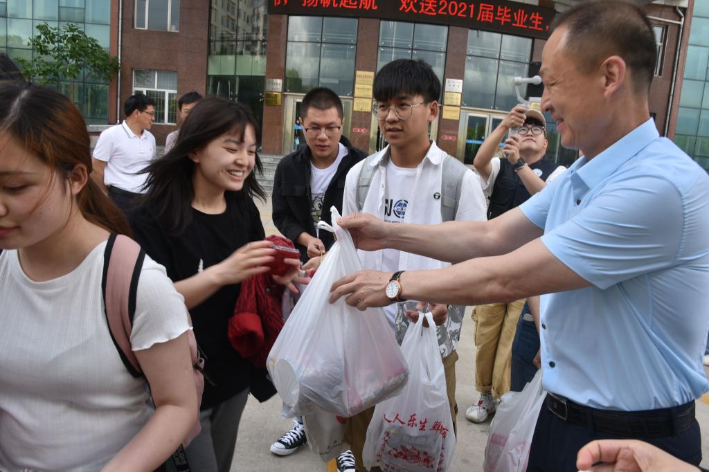 2021年的毕业季,平稳、顺利、暖心。学校为毕业生提供了“上车饺子”,饺子象征平安祝福,希望带给毕业生好运。同时,为了避免毕业生邮寄行李往来奔波,学校协调快递公司,进入校园为毕业生邮寄行李,极大地方便了毕业生。各二级学院以线上和线下相结合的方式召开了毕业典礼,并利用微信平台等媒体营造了文明离校氛围,勉励毕业生砥砺奋进,大展宏图。