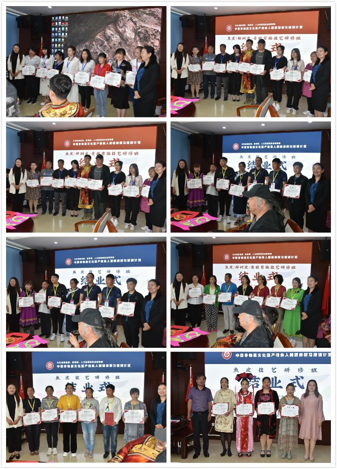 6月22日,由黑龙江省文旅厅主办、我校承办的中国非物质文化遗产传承人群研修研习培训计划“鱼皮技艺研修班”“鱼皮、桦树皮、麦秸剪贴技艺研修班”圆满结束。我校科研处处长金志民,省乡村教师教育发展学院(继续教育学院)书记王明莉、院长周传胜,项目负责人、首席专家,我校文学院宋娟教授,项目宣传策划,我校文学院宋明华教授及全体研修学员、项目管理团队、学术团队出席结业式。结业式由省乡村教师教育发展学院(继续教育学院)院长周传胜主持。