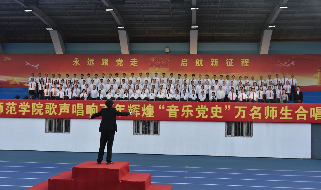 漫漫征途忆峥嵘岁月,声声嘹亮颂百年初心。6月25日下午,歌声唱响百年辉煌“音乐党史”万名师生合唱展演活动在我校田径场隆重举行。学校党政领导王志浩、李春江、刘峰、张冬、孙宝民、程爽、张艳霞、秦植林与全校万名师生齐聚一堂,唱响经典红歌、传承红色精神。