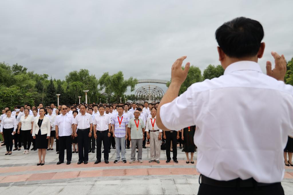 仪式最后,全体师生党员合唱《没有共产党就没有新中国》,同向党的百年华诞送上美好祝福。衷心祝愿伟大的祖国繁荣昌盛,祝愿伟大的中国共产党永葆青春活力、再创辉煌,祝愿牡丹江师范学院的明天更加美好。