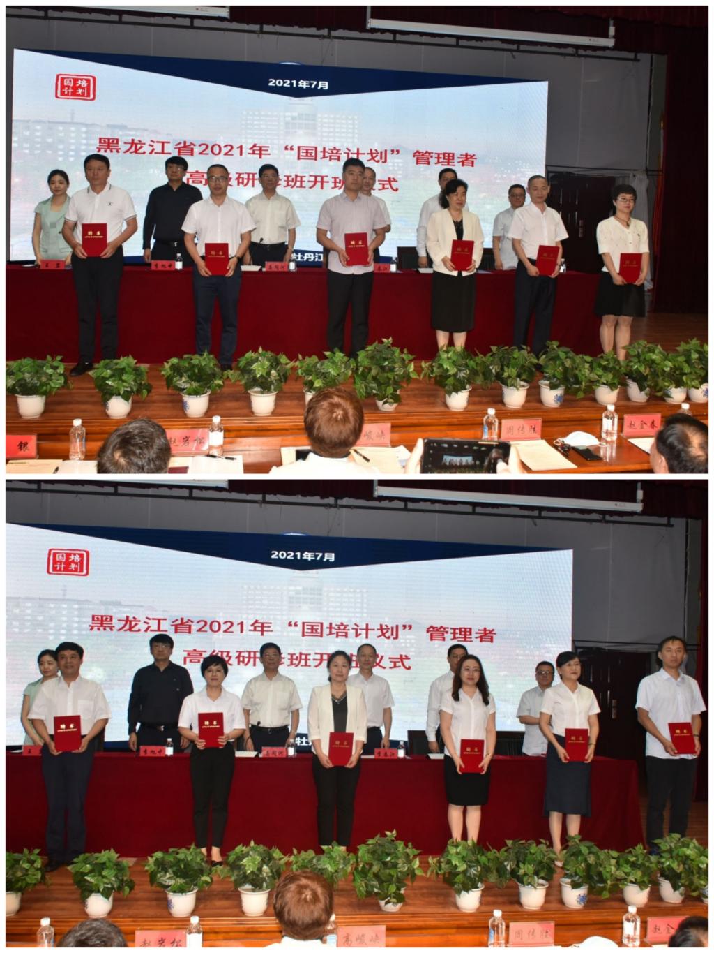 7月6日上午,由黑龙江省教育厅主办、牡丹江师范学院承办、黑龙江教师发展学院协办的黑龙江省2021年“国培计划”管理者高级研修班开班式在我校春秋讲坛举行。黑龙江省教育厅党组成员、副厅长姜同河,黑龙江省教育厅教师工作处处长刘德宏、副处长王岩,黑龙江教师发展学院教师校长培训中心主任、省国培计划项目办主任陆难平;我院院长、党委副书记李春江,副院长李旭中出席开班式。本次高研班管理团队成员及全体学员参加开班式。开班式由黑龙江省教育厅教师工作处处长刘德宏主持。