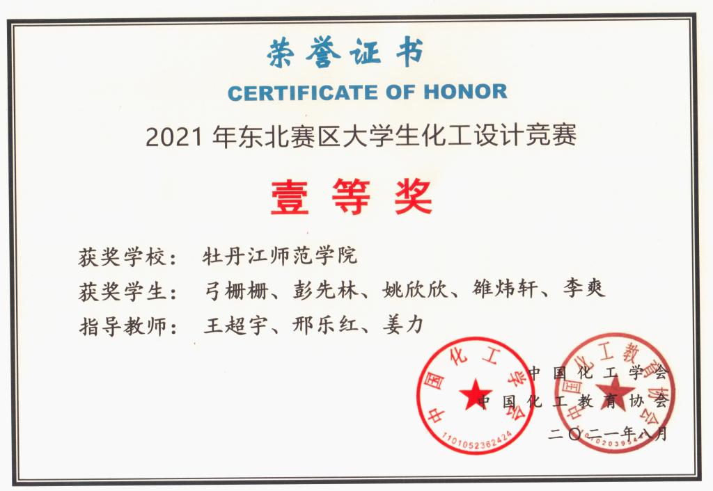 近日,由中国化工学会、中国化工教育协会主办的2021年“天正设计杯”第十五届全国大学生化工设计竞赛圆满结束。经过激励角逐,由化学化工学院弓栅栅、彭先林、姚欣欣、雒炜轩、李爽五名同学组成的团队喜获全国二等奖、东北赛区一等奖。