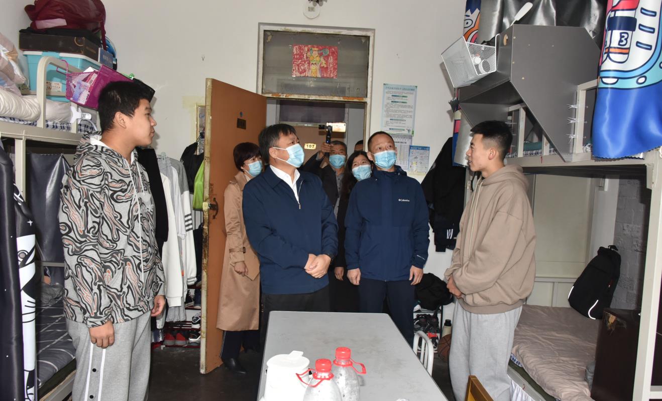 二、坚持多措并举,保证校内工作平稳有序。工作指导到位。学校始终坚持将教育教学和抗疫工作统筹谋划,将确保师生员工生命安全作为第一要务。主要领导多次深入课堂、食堂、学生宿舍、超市、快递点、供水站等现场办公,督导检查指导工作。学校成立疫情防控专班,实施每日例会制度。防疫管理到位。在食堂、校内商服、快递点等人员密集场所设专人管理,引导师生扫码、测温、戴口罩。巡查保障到位。增加警力加大校园巡查力度,加高加固外墙栅栏299米,做好公共区域消杀、室内通风和保洁。