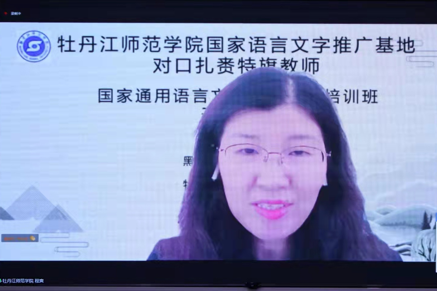 11月14日,牡丹江师范学院国家语言文字推广基地对口扎赉特旗教师国家通用语言文字能力提升在线培训班开班仪式在综合楼201室举行。仪式以线上线下相结合的方式举行。牡丹江师范学院副院长、党委常委程爽,黑龙江省教育厅语言文字与教材管理处处长宗希云,内蒙古兴安盟扎赉特旗教育事业发展中心主任孙亚梅及一百名学员参加线上开班式;我校相关职能部门负责人及任课教师参加线下开班式。仪式由文学院党委书记吴媛媛主持。