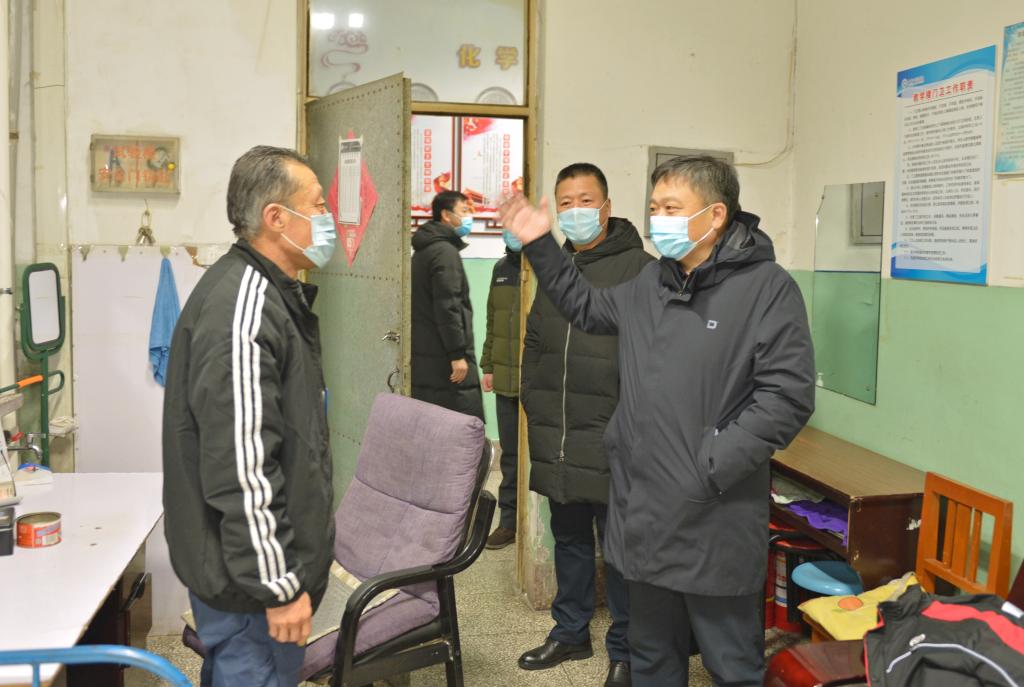 在变电所、供水站、换热站、理工楼门卫室、保卫处值班室等值班点,王志浩书记与一线工作人员亲切交谈,仔细询问了各岗位的人员配置、值班安排、设备运行情况,叮嘱后勤保障部门要认真值守、服务到位、确保水电暖的正常供应。
