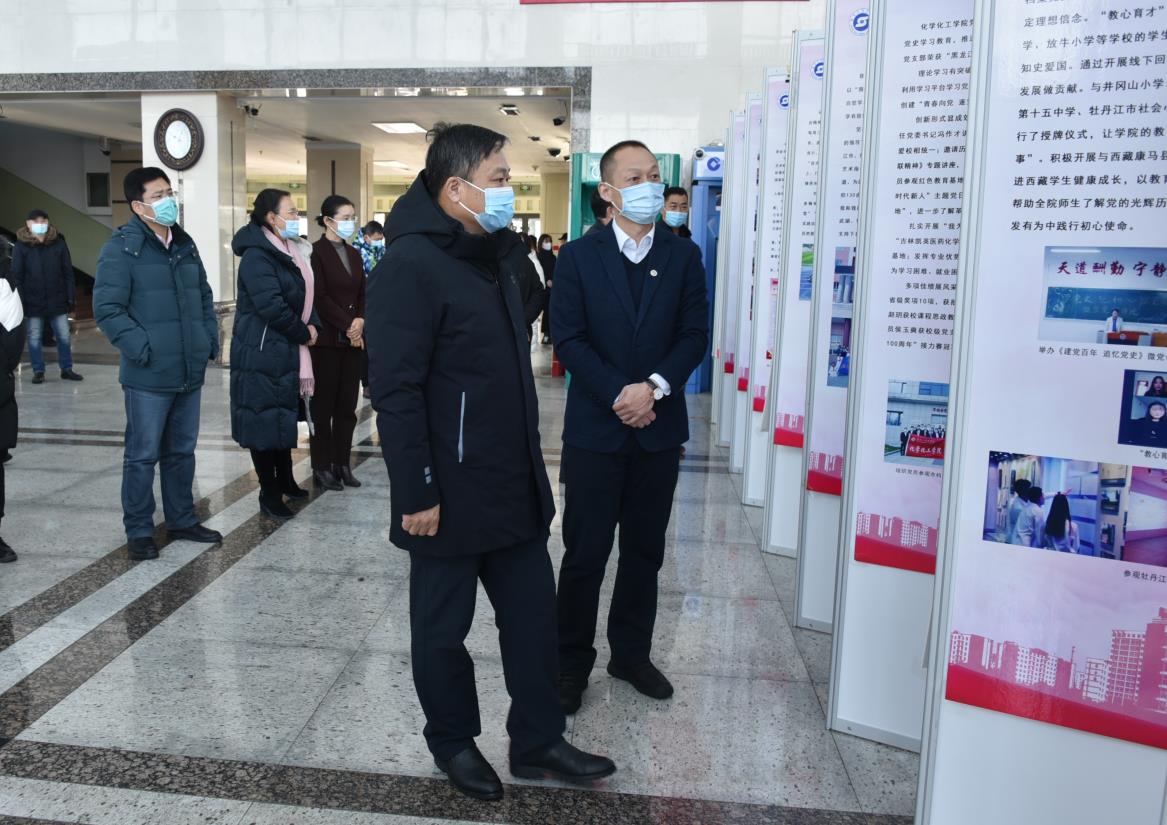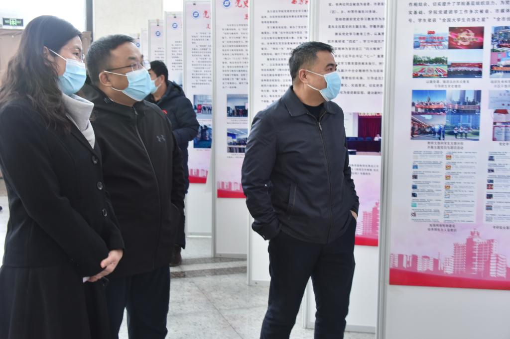 为全面展示学校各基层党委、党总支、直属党支部党史学习教育的典型做法和成效,学校在综合楼阳光大厅举办了党史学习教育成果展。12月17日,学校党政领导王志浩、李春江、刘松、程爽、张艳霞、张燕梁、张冰、秦植林;各二级学院党委书记,职能部门负责人参观了展览。