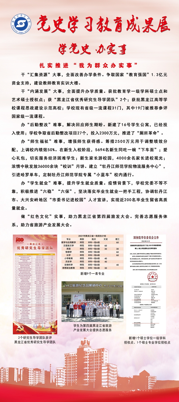 学党史、悟思想、重实践、办实事——牡丹江师范学院党史学习教育成果展