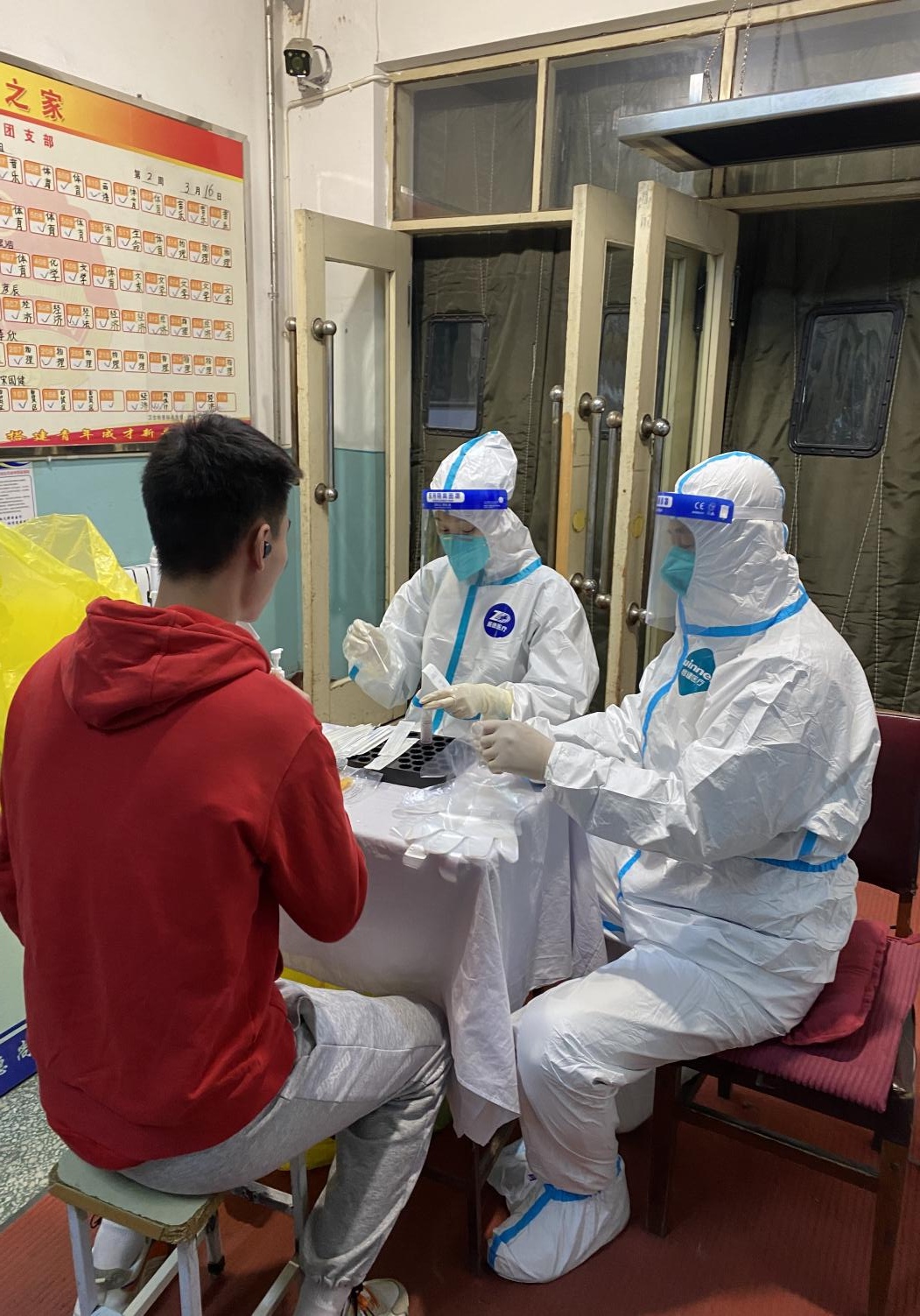 疫情就是命令,防控就是责任。为保障全体在校生的正常学习和生活,学校第一时间按照属地安排开展全员核酸检测。学生处紧急召集51名学工战线工作人员,组织部组织13名党员干部,冲在第一线,克服时间紧、任务重等困难,全力保障核酸检测、学生管理等工作。他们中有孩子尚小的年轻教师、有即将退休的老同志、有亲属病患需要照顾的辅导员、有身体不适仍坚持一线的学工人员、有亲人去世不能在身边的公寓楼长。核酸检测到次日凌晨3点多,为了不打扰学生,大家主动放弃了到学生寝室的住宿,回到办公室进行短暂休息,又投入紧张的工作中。