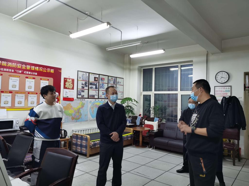 每到一处,学校领导都亲切地询问大家的工作情况、需求和困难,李春江院长代表学校对大家在封校以来对学校工作的支持配合和理解表示感谢,对大家克服困难、解决各项难题、营造安全校园环境、守护学生健康付出的辛劳表示感谢,对大家良好的工作状态、积极向上的精神面貌和踏实有效的工作作风予以肯定和赞扬。李春江院长叮嘱教职工们在工作中一定要劳逸结合,注意休息,做好个人防疫,及时反馈工作中遇到的问题和困难,学校和大家一起解决。李春江院长表示,在校教职工是冲在学校防疫第一线的人员,在学校突然封闭的紧急时刻,和学校一起守护在校学生的安全,为学生提供了安心学习生活的校园环境。在工作人员极其缺少的情况下,大家化身清洁工、保卫员、巡逻员、宣传员、搬运工、理货员,化身“大白”和医护人员一起顺利完成了密集多轮的核酸检测,让学生看到了学校的努力和付出,看到了教工的责任和担当,也让学生们更加安心地在校学习生活。李春江院长希望请大家相信学校、相信自己,和学校同心同向同行,共同打赢这场疫情的阻击战歼灭战,迎来真正的“春暖花开”。